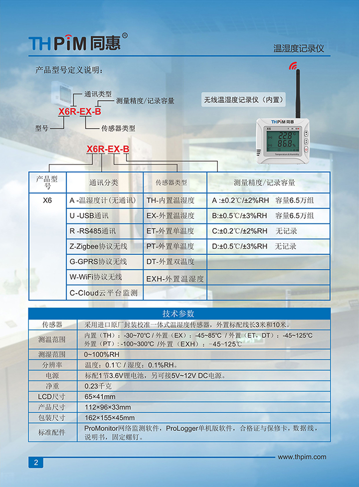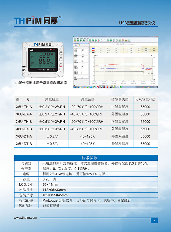 X6U-TH-A | ±0.2℃/±2%RH | -20~70℃ 0~100%RH | 溫度+濕度,內(nèi)置 | 6.5萬組 |